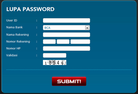 - Jika anda ingin lancar dalam proses DEPOSIT harap mengirim dana dalam angka unik di setiap deposit. Contoh : Rp. 500.879, Rp 50.247, Rp. 84.987 dan sebagainya. Ini berguna untuk kami melihat secara cepat deposit anda